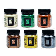 - Краски. Созданы на основе акрила и подходят для декорирования кожаных и тканевых изделий. Серии красок имеют стандартные и металлические оттенки. Материалы быстро сохнут и имеют водоотталкивающие свойства. Готовые изделия с рисунками из акриловых красок успешно переносят машинную и ручную стирку.