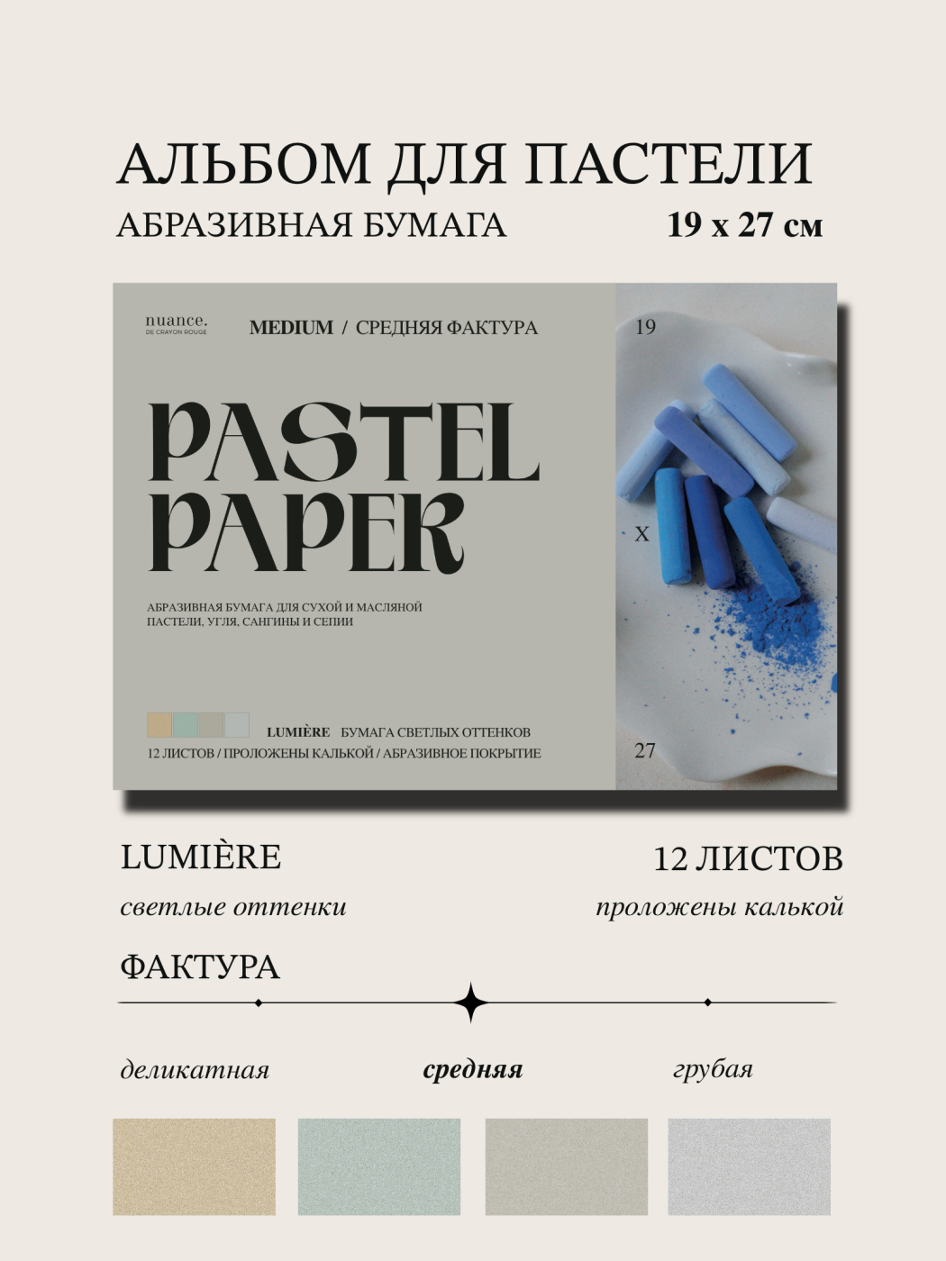 Альбом для пастели nuance. 19x27 см, абразивная бумага, 12 л., светлые оттенки, MEDIUM