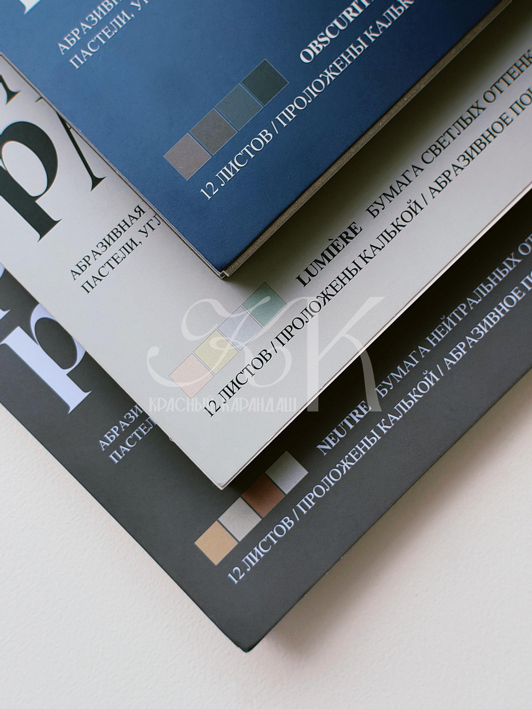 Каждая серия представлена альбомами с деликатной, средней или грубой фактурой бумаги.
