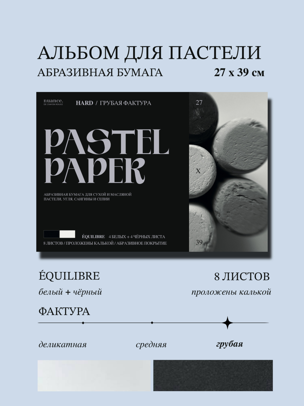 Альбом для пастели nuance. 27x39 см, абразивная бумага, 8 л., белый и черный, HARD