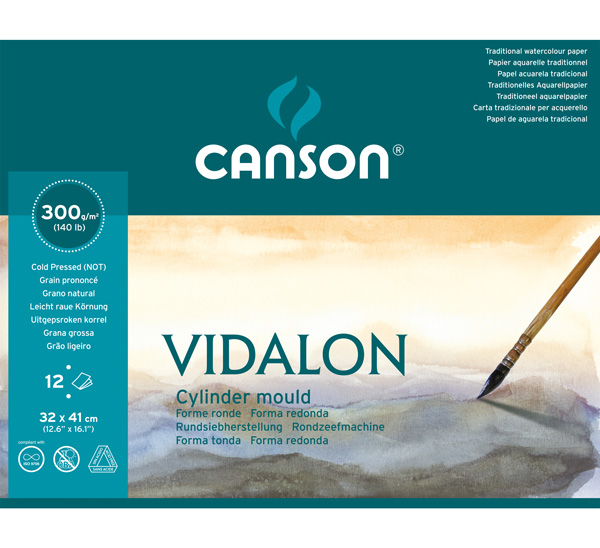 Бумага для акварели «Vidalon» производится на специальных цилиндрических машинах, которые максимально точно передают текстуру бумаги, изготовленной вручную. Бумага «Vidalon» состоит из 100% целлюлозы без добавления кислот. Фактура «снежное зерно» придаёт краскам объем и подчеркивает цвет пигментов. Бумага легко выдерживает вымывания и соскабливания.