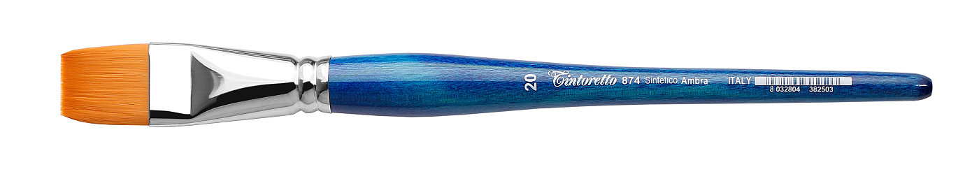Кисть синтетика №20 плоская Tintoretto "Amber" на короткой ручке, номер №20