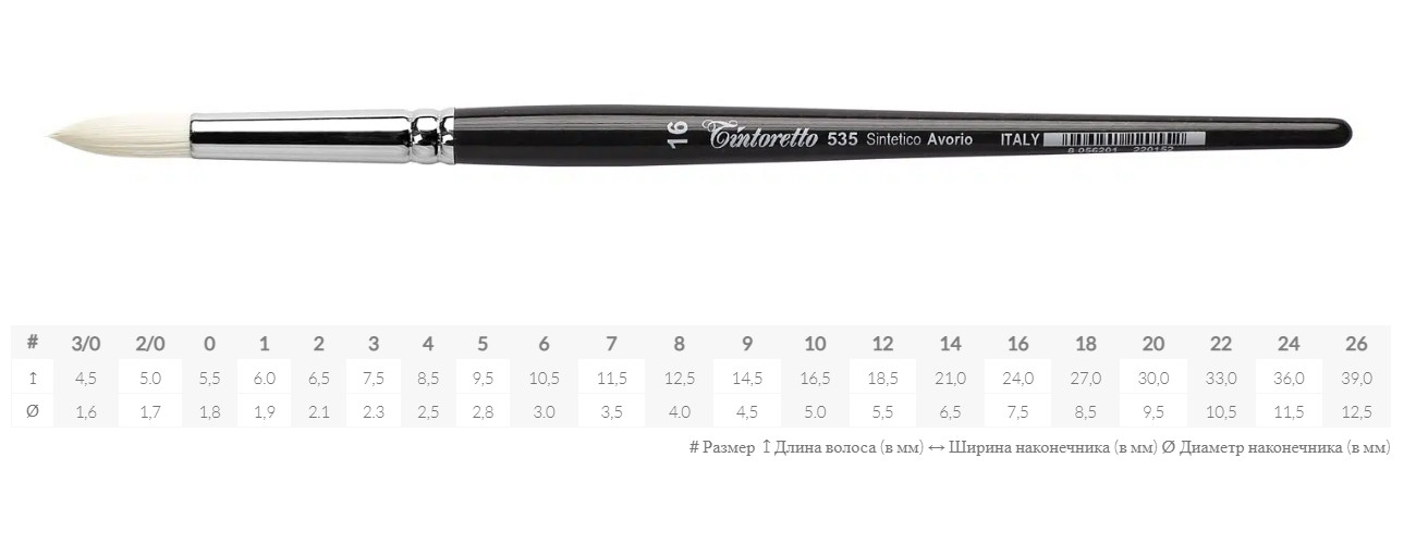 Кисть синтетика №22 круглая Tintoretto "Avorio" на короткой ручке