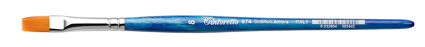 Кисть синтетика №8 плоская Tintoretto "Amber" на короткой ручке