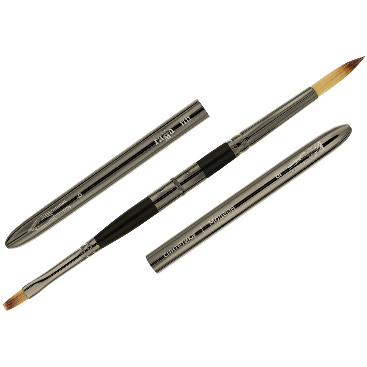 Кисть синтетика двухсторонняя, круглая №6, плоская №5 Гамма "Модерн" складная ручка
