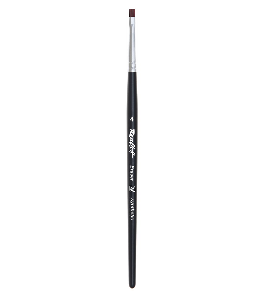 Кисть синтетика вишневая №4 плоская Roubloff "Eraser" ручка короткая, чёрная матовая
