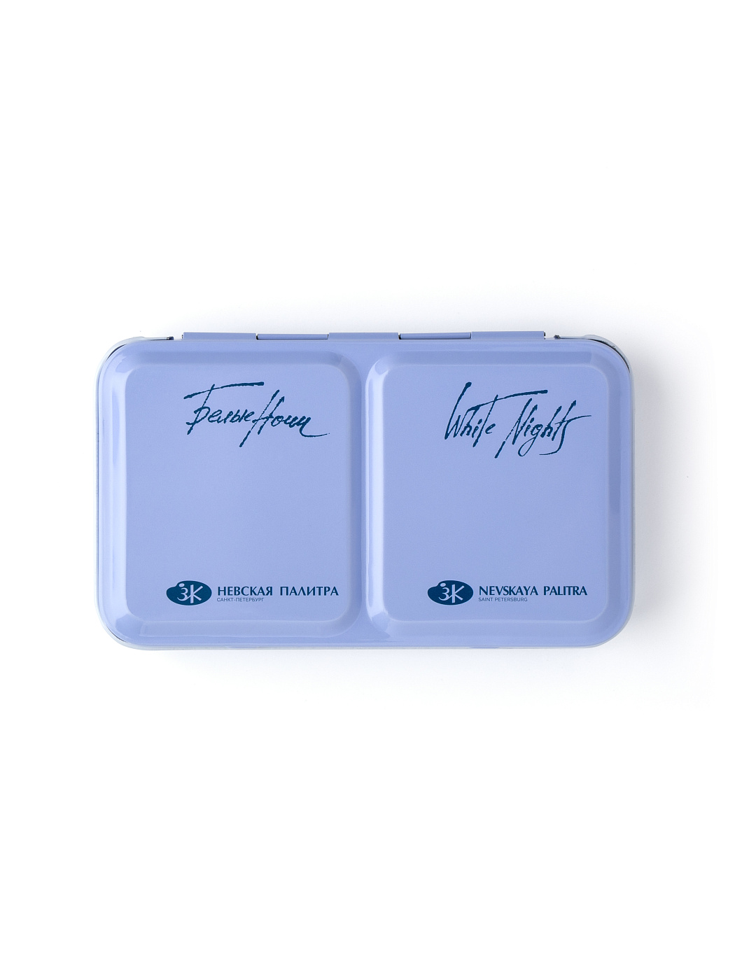Набор комплектуется в металлическом пенале с откидной палитрой и надежными держателями кювет во время работы и транспортировки. Пенал оснащен кольцом для удобной фиксации в руке, чтобы работать на весу. Кюветы объемом 2,5мл.