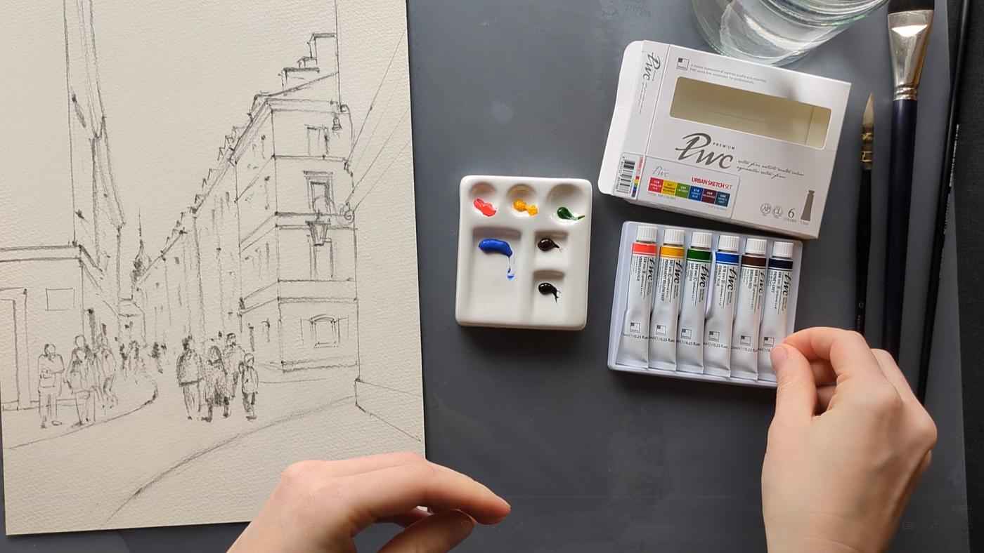 Набор акварели ShinHan "PWC" 6 цв. по 7,5 мл, Городской пейзаж, в картонной упаковке 1