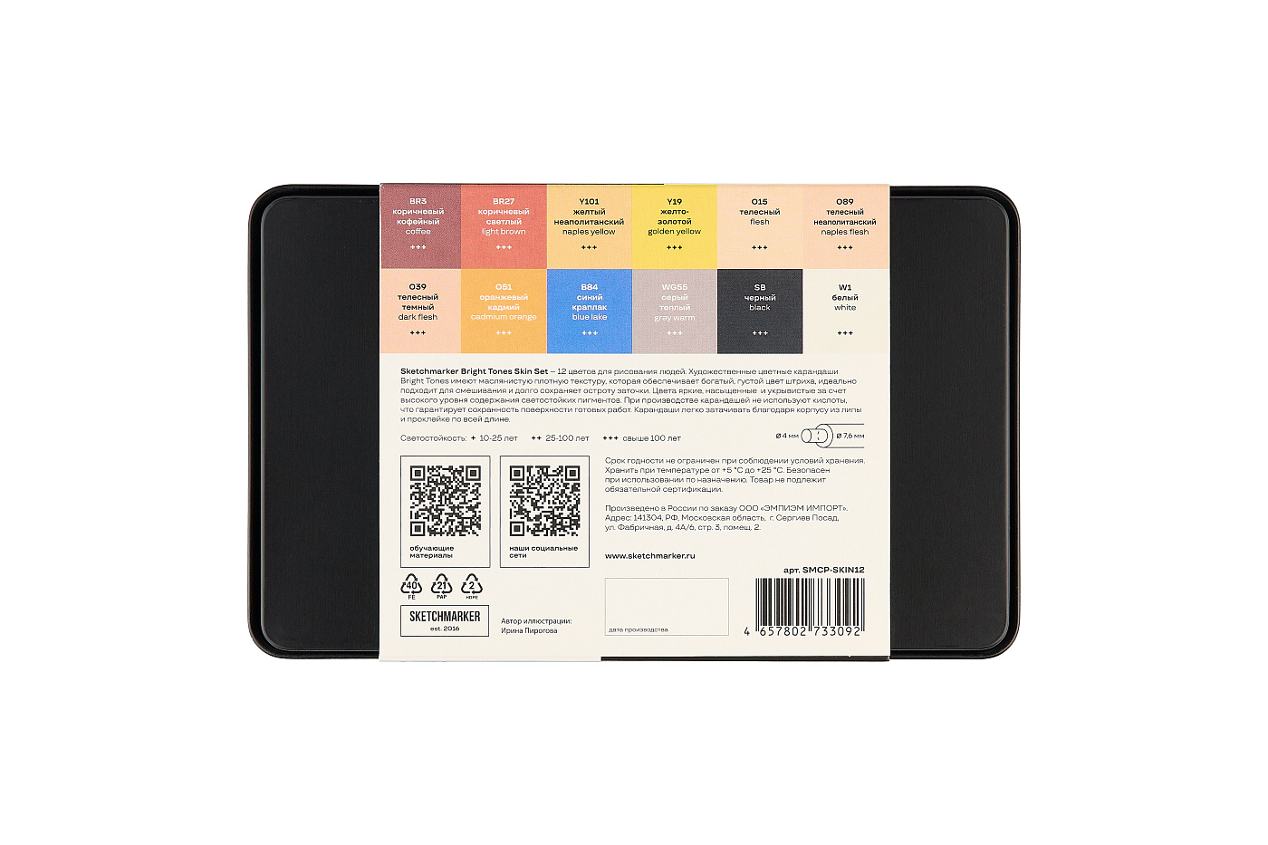 Набор карандашей цветные Sketchmarker "Оттенки кожи", 12 цветов, жестяной пенал (Арт.SKM-SMCP-SKIN12)
