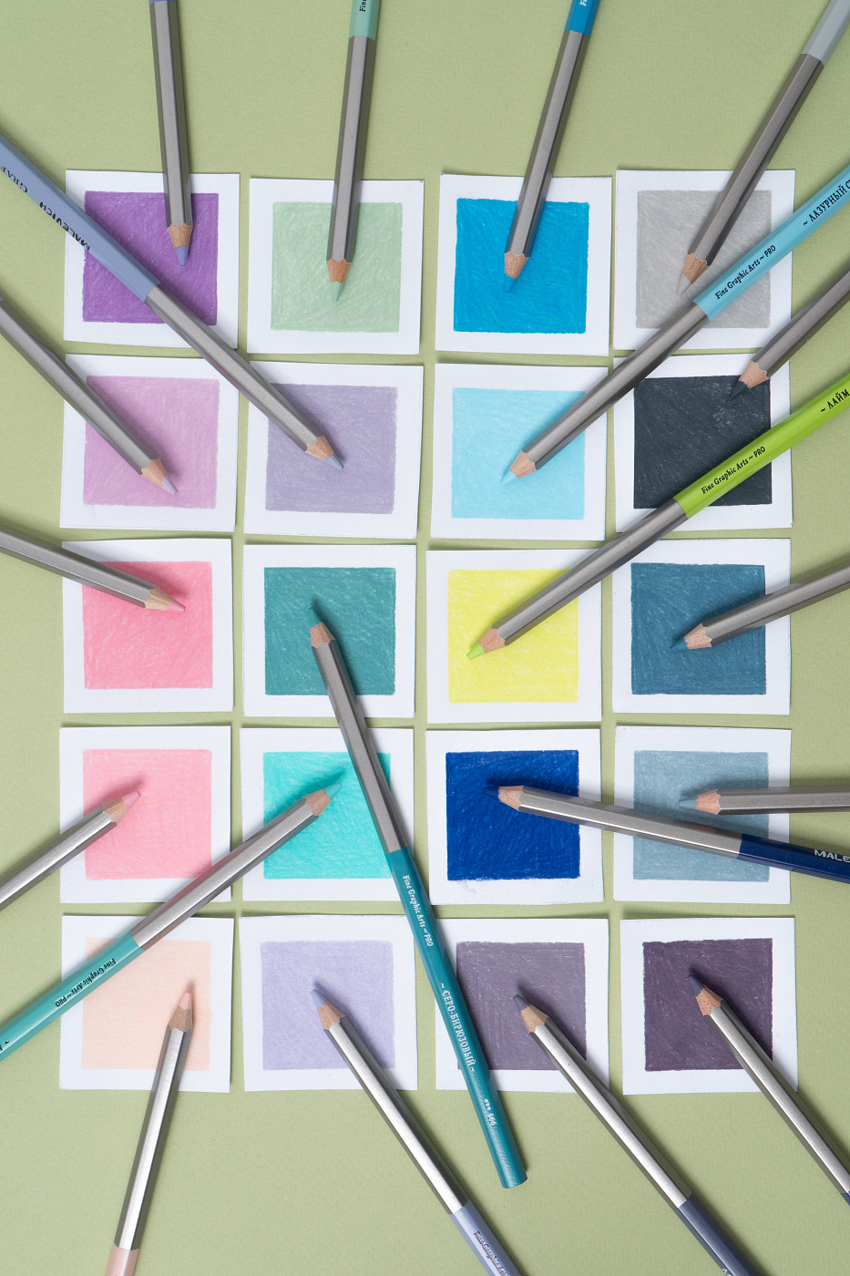 Интересные оттенки и разнообразная палитра дают возможность создавать реалистичные или фантазийные сюжеты в разных стилях, на разные темы. Карандаши легко смешиваются и наслаиваются друг на друга. В зависимости от порядка наслаивания цвета можно получить разные оттенки. При легком прикосновении к бумаге без усилий остаются воздушные линии через которые будет видна фактура бумаги, это придает рисунку легкость и нежность. Благодаря грифелю средней твердости и масляной основе, меняя силу нажима, можно без труда получать потрясающие градиенты, переходы и заливки.