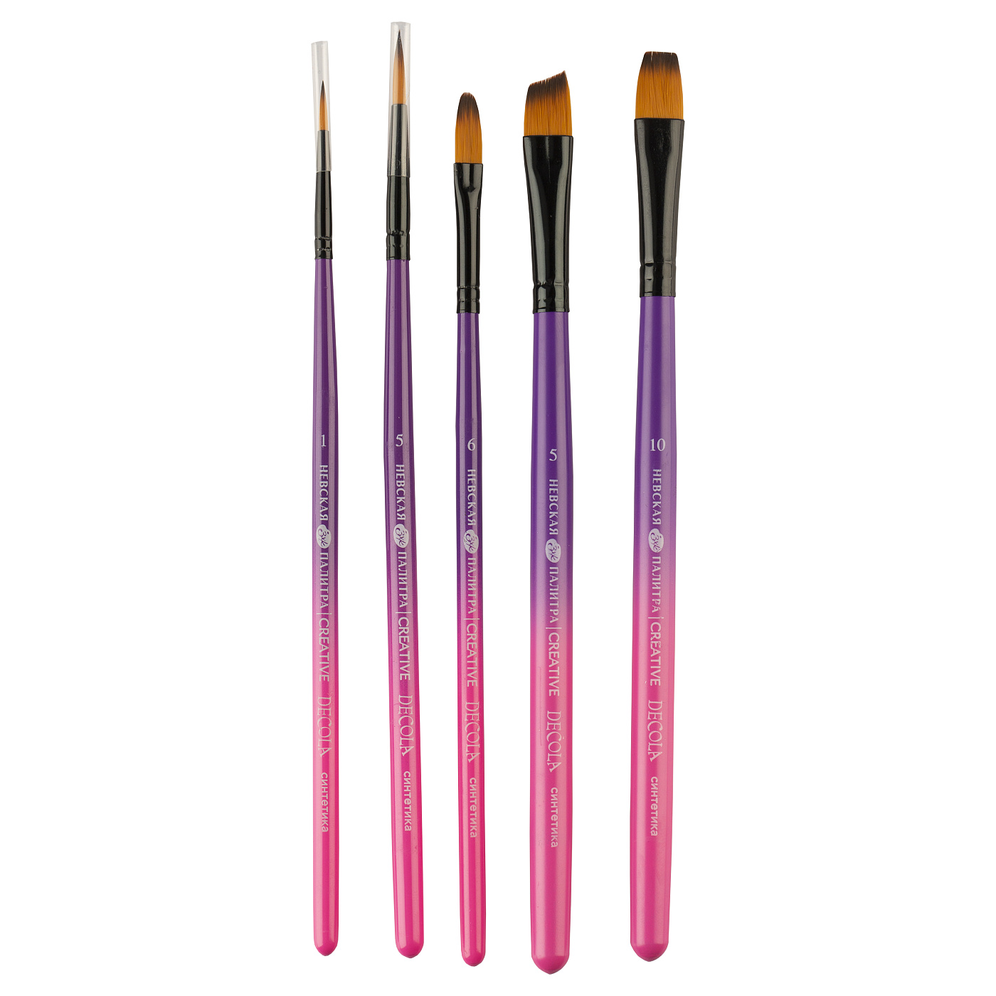 Набор кистей синтетика Decola №4, 5 шт (№ 1, 5 круглая, короткая ручка; № 10 плоская, короткая ручка