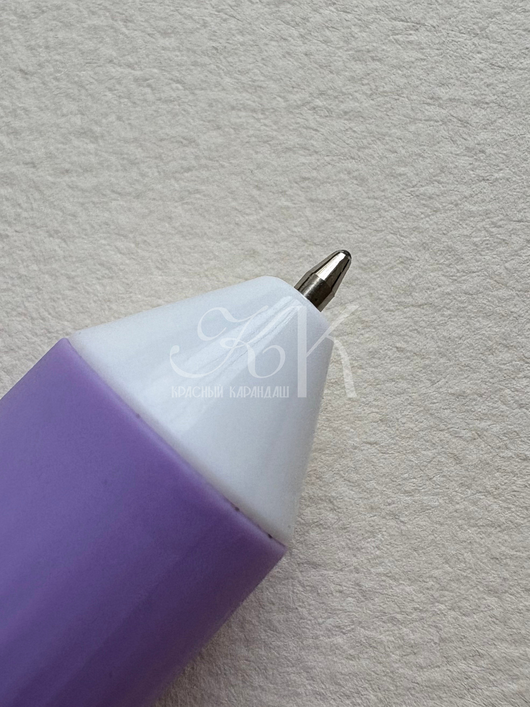 Вращающийся шарик на колпачке снимает напряжение во время пауз в творчестве, а также служит кнопкой для смены цвета в ручке.