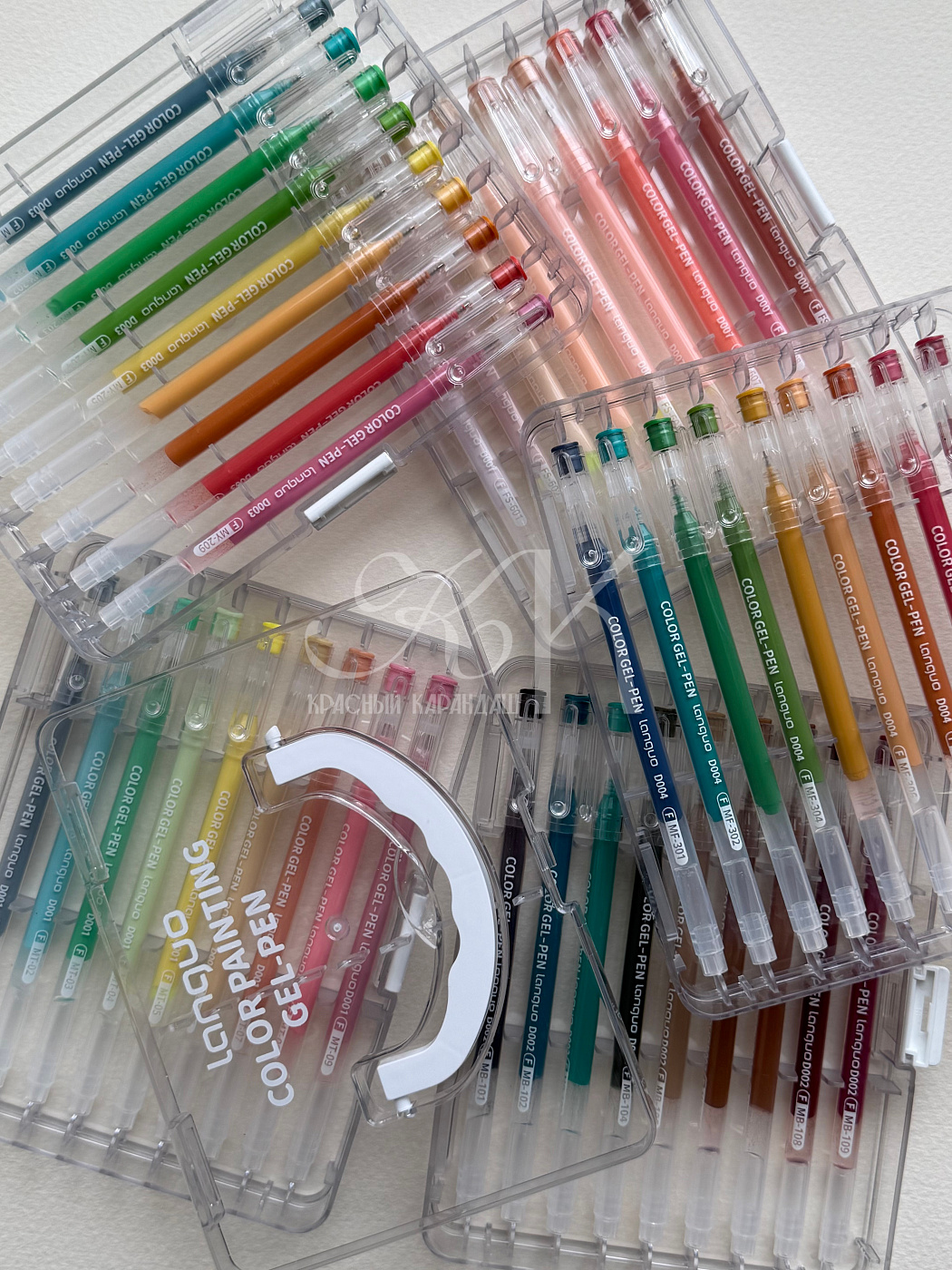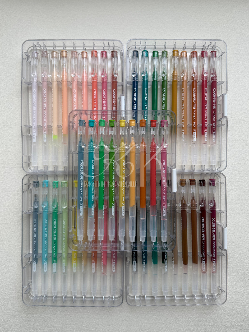 Набор гелевых ручек с большой палитрой. Благодаря укрывистым и плотным чернилам подходит для рисования и декорирования на различных поверхностях: бумага, картон, холст и пластика.