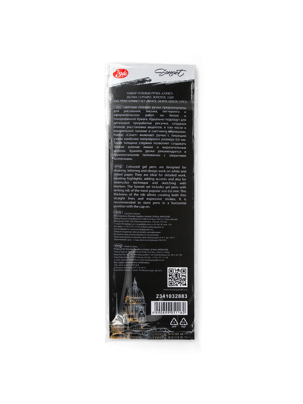 Набор ручек гелевых "Сонет", 3 шт, 0,6 мм (белая, серебро, золото) 7