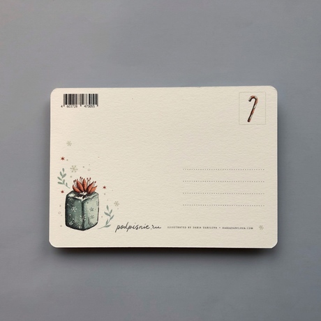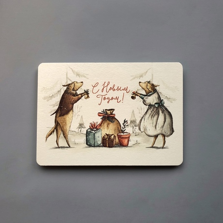 Чтобы поздравить родного человека или друга, не обязательно говорить слова, за вас это может сделать открытка. Открытка выполнена из дизайнерского картона цвета слоновой кости. На лицевой стороне оригинальный принт с новогодними мотивами, на обратной стороне вы можете написать адрес получателя, приклеить марку и написать самые теплые слова и пожелания.