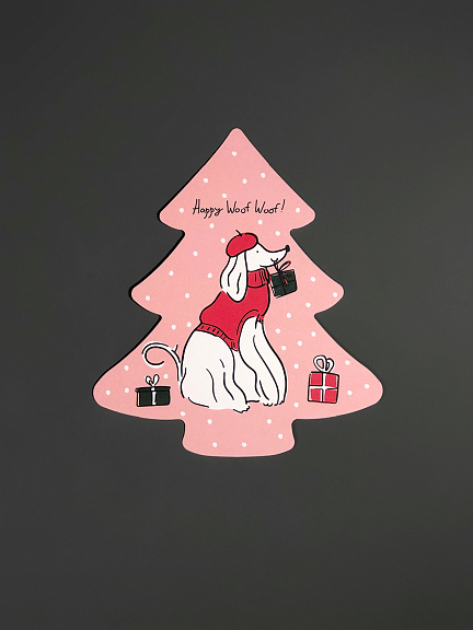 Открытка "Ёлочка. Собачка в берете"