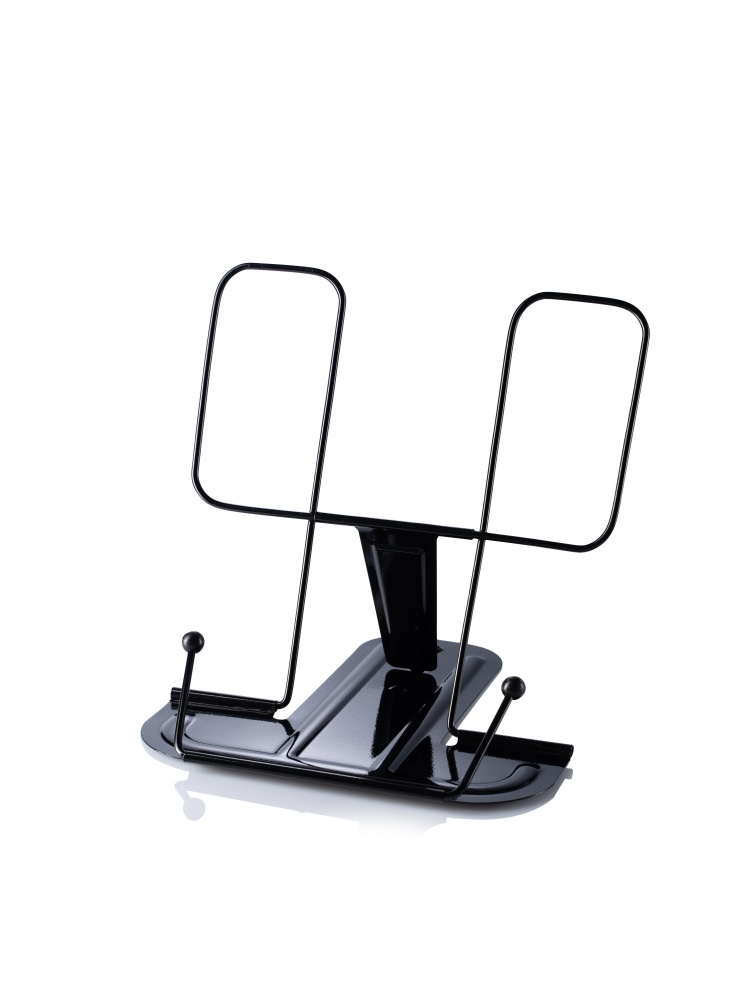Подставка для книг из прочного металла, несколько уровней наклона, цвет черный. Благодаря износостойкому покрытию, подставка будет оставаться в хорошем состоянии долгое время. Держатель, расположенный в нижней части, надежно фиксирует страницы.