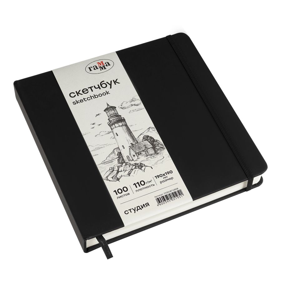 Скетчбук Гамма "Студия" 19х19 см 100 л 110 г, черный, твердая обложка, на резинке, слоновая кость