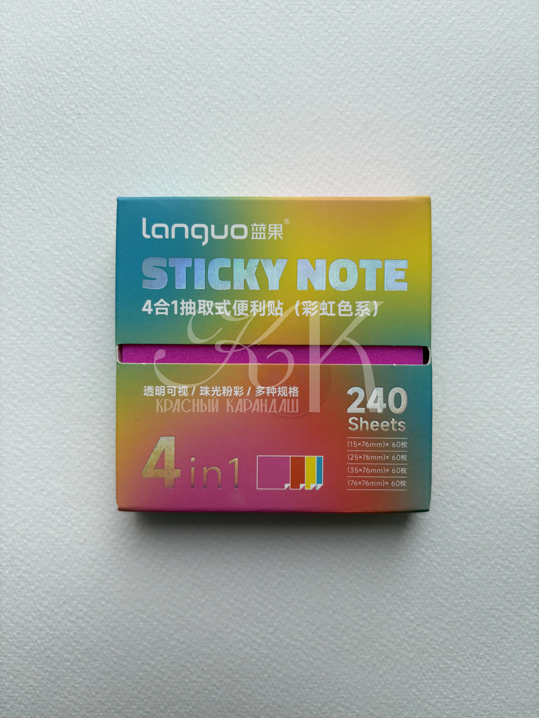 Закладки самоклеящиеся Languo, 15*76 мм, 25*76 мм, 35*76 мм, 76*76 мм по 60 л, 2 4